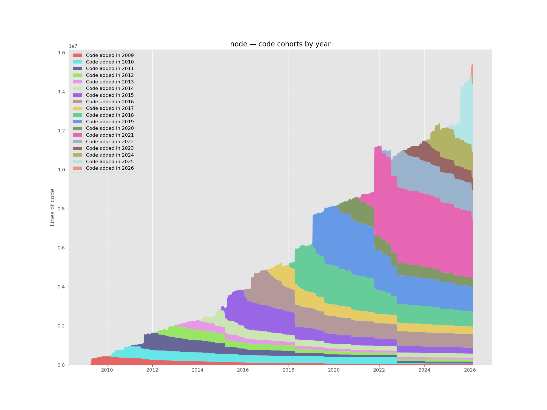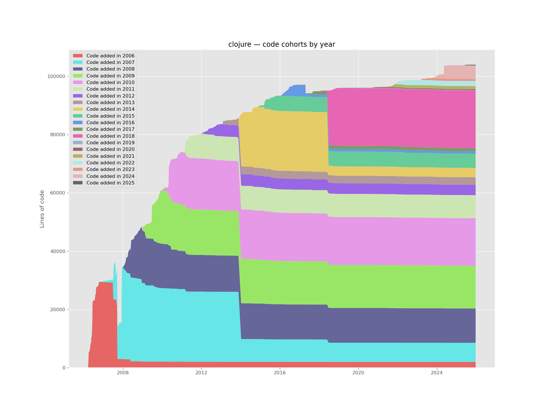 Rich Hickey published code retention charts for Clojure in his ACM paper "A